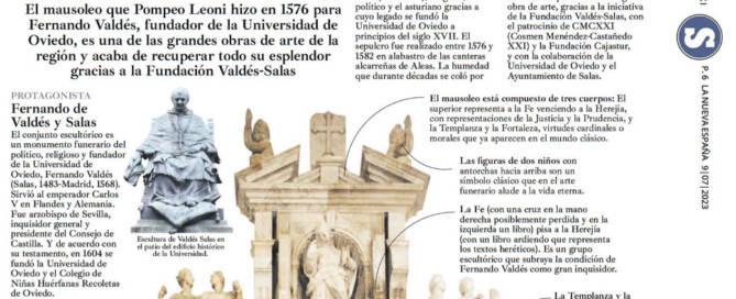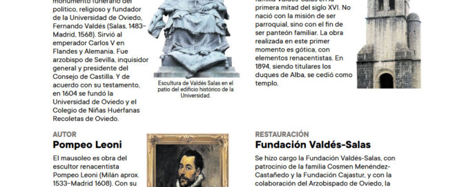 El mausoleo que Pompeo Leoni hizo en 1576 para Fernando Valdés, fundador de la Universidad de Oviedo, es una de las grandes obras de arte de la región y acaba de recuperar todo su esplendor gracias a la Fundación Valdés-Salas. Descargar PDF