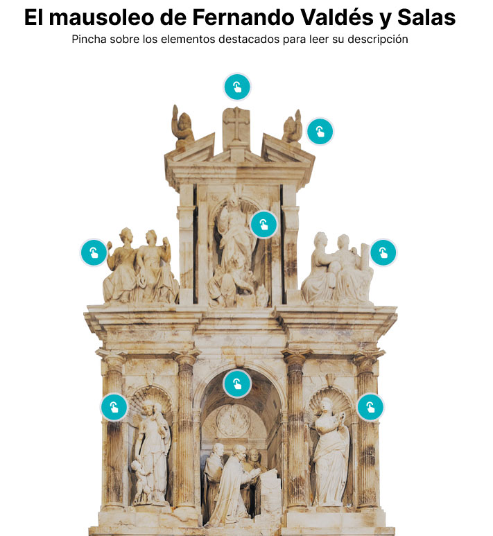 El mausoleo que Pompeo Leoni hizo en 1576 para Fernando Valdés, fundador de la Universidad de Oviedo, es una de las grandes obras de arte de la región y acaba de recuperar todo su esplendor gracias a la Fundación Valdés-Salas.