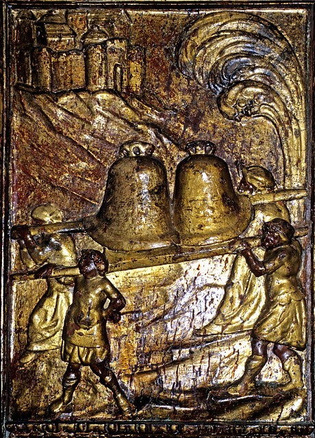 Representación del traslado de las campanas realizada por Gregorio Español (1596) para la remodelación del coro de la Catedral de Santiago en el siglo XVII