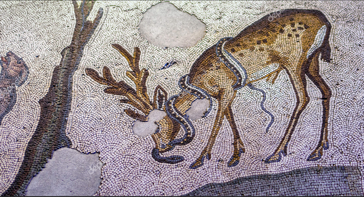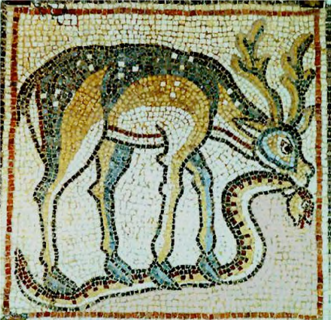 La lucha entre el ciervo y la serpiente constituye un motivo iconográfico que se ha difundido a través de los siglos, tanto en Occidente como en Oriente, según se puede ver en la serie de ilustraciones que adjuntamos a continuación: