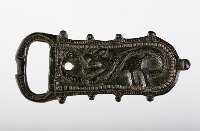 Broche de cinturón hispano-visigodo, procedente de León, elaborado en bronce (siglo VII)