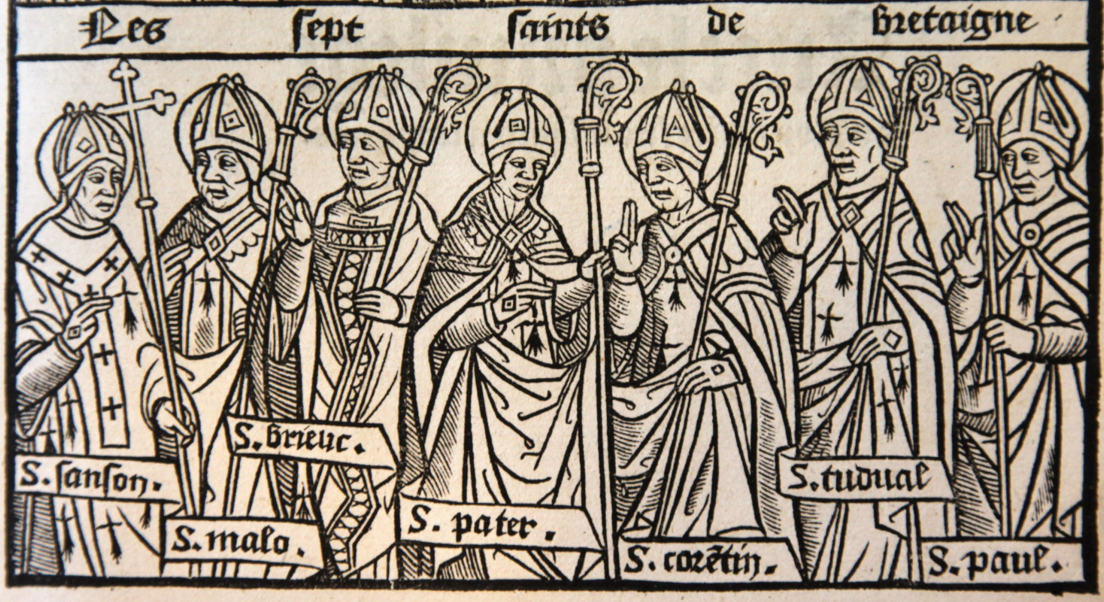 Representación de los Siete Santos de Bretaña en un grabado de Les Grandes Croniques de Bretaigne, de Alain Bouchart (1514)